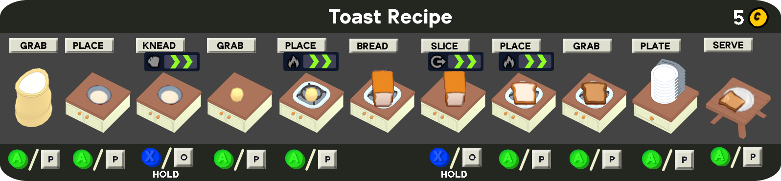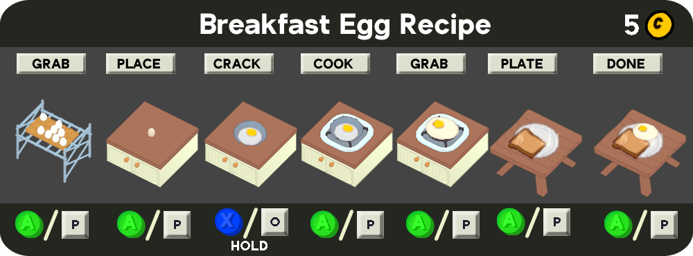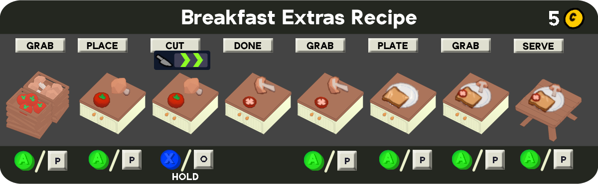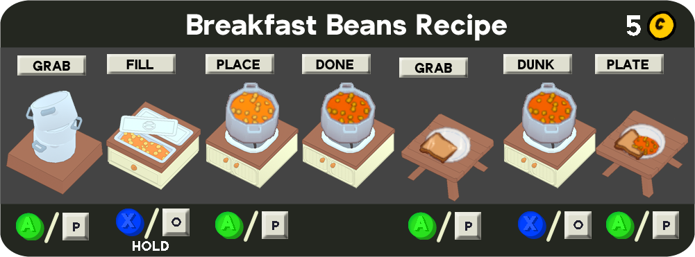 Breakfast is one of the Main Recipes chosen in the Headquarters to start a run. The initial Recipe consists only of Toast, and although a loaf takes a very long time to cook, it provides ten slices.