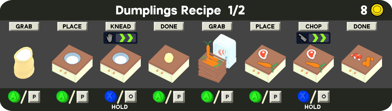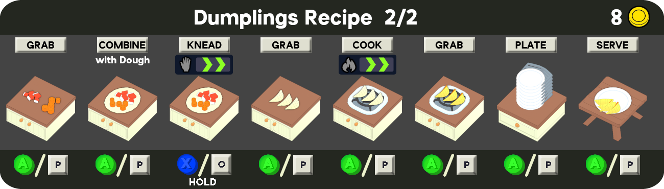 Dumplings are one of the Main Recipes chosen in the Headquarters to start a run.