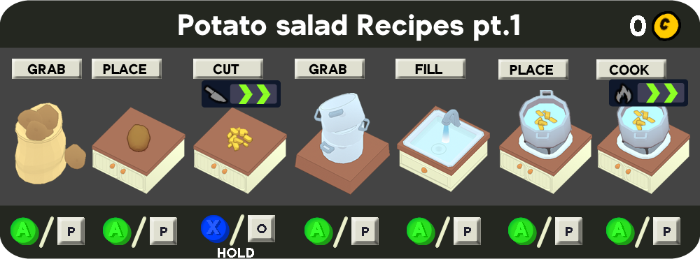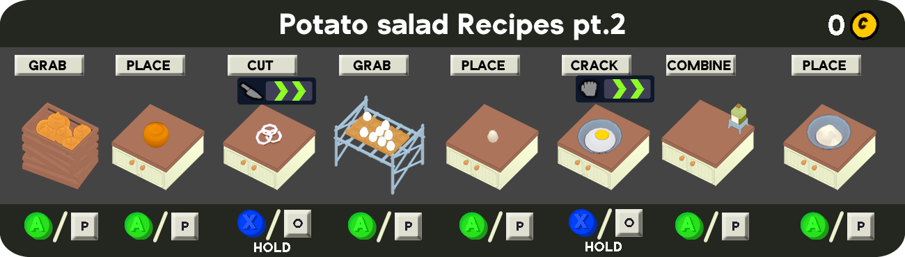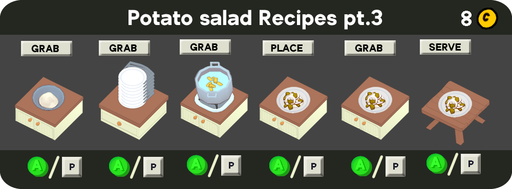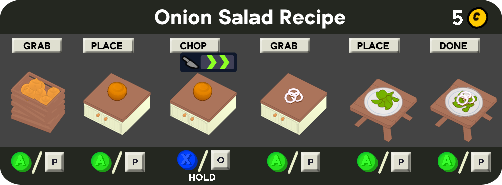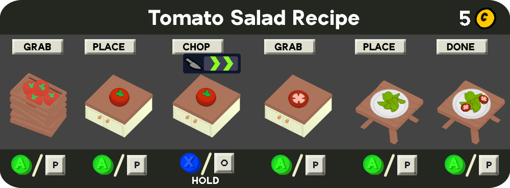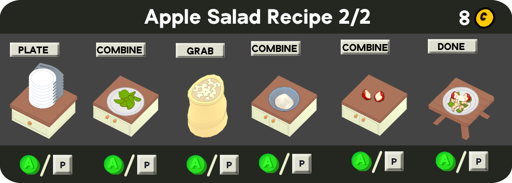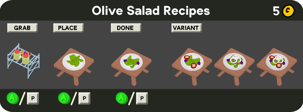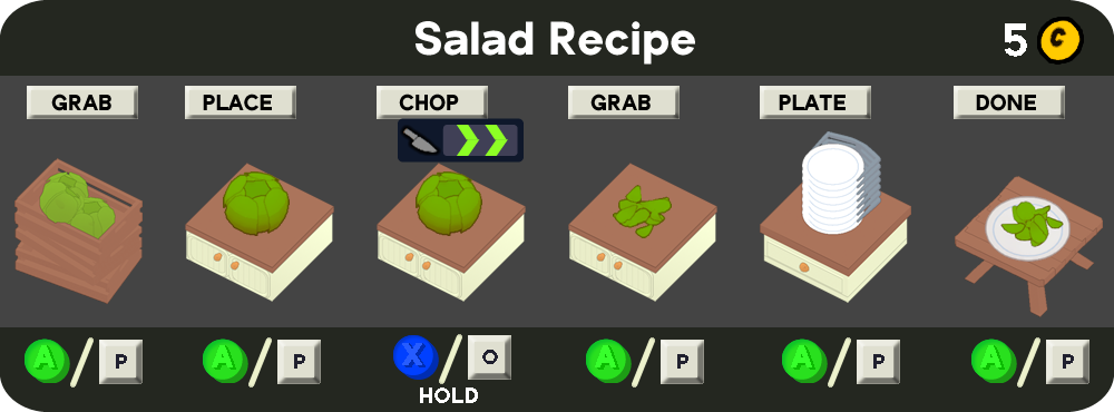Salad is one of the Main Recipes which can be chosen in the Headquarters to start a run. Initially a very simple dish, it requires no cooking, but lots of chopping.
