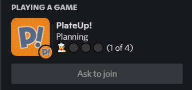 I've also added support for Discord and Steam's rich presence, so you'll show up as ingame on both platforms. People can also see what phase you're in and if you have any free slots to join! There's lots of potential things to add there, so let me know what you'd like to see!